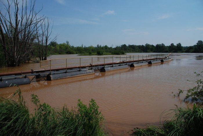Paddelausflug der besonderen Art: Am 04.06.2011 zog das THW Bad Staffelstein ein Stahlseil quer über einen See des Kieswerks Schramm in Trieb. Mit dem Seil wurden später Schwemmrohre auf Pontons nachgezogen.