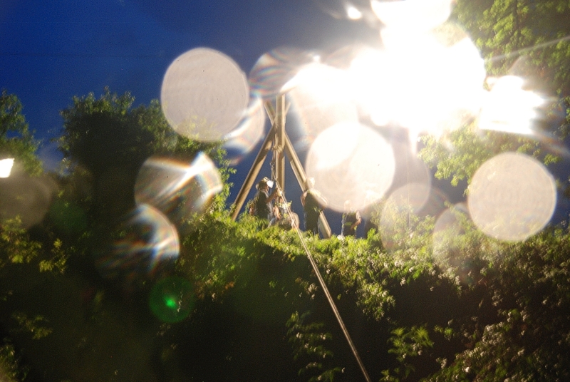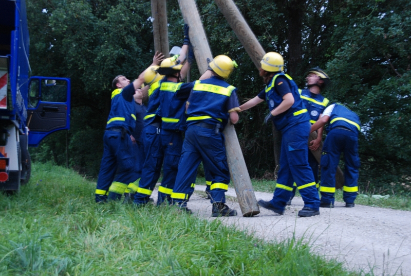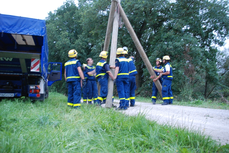 Am letzten Mittwoch im Juli haben wir am Main-Ufer eine etwas abgeschwächte Version des 6 Meter freitragenden EGS-Stegs aufgebaut und am darauf folgenden Mittwoch haben wir uns an einer Seilbahn zum Verletztentransport versucht.