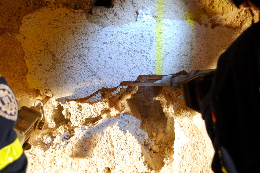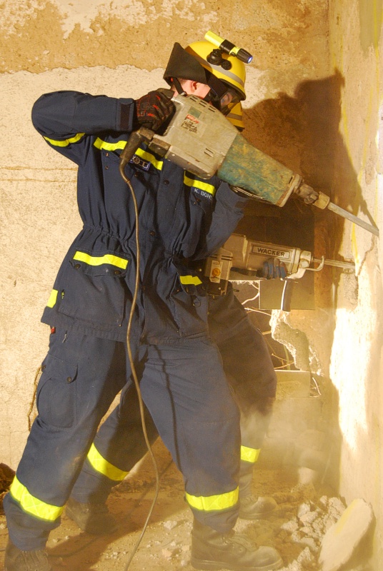 Zu den Aufgaben der Bergungsgruppen gehört auch die Rettung verschütteter und eingeschlossener Personen, wofür man sich unter Umständen auch durch Beton und Mauerwerk beschädigter Gebäude arbeiten muss. Leider ergibt sich nicht allzu oft die Möglichkeit, sich beispielsweise an einen realen Mauerdurchbruch zu versuchen.