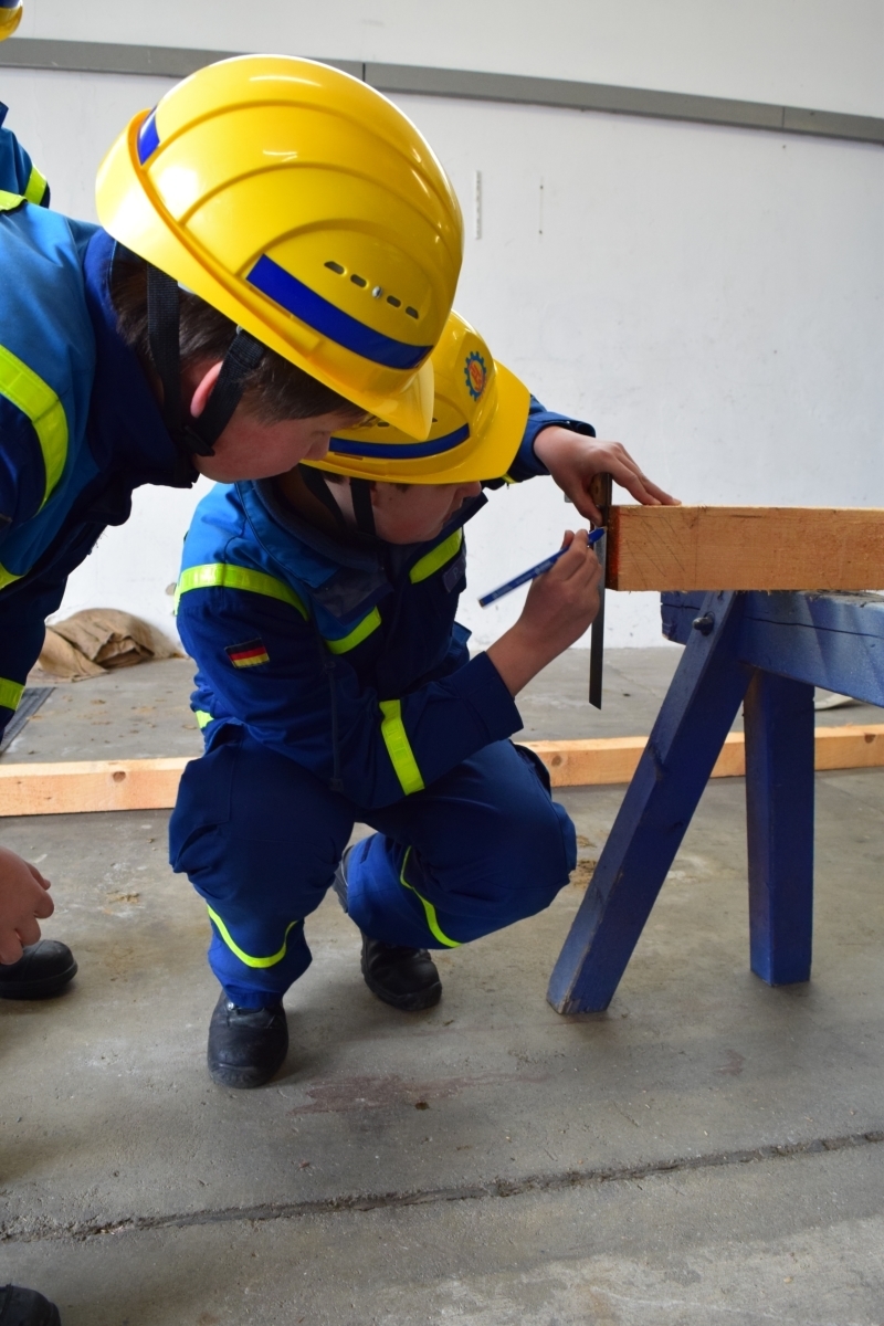 Es wurde ein Strebstützbock aus Holz gebaut, dieser dient zum Abstützen vom Gebäuden nach Schäden.