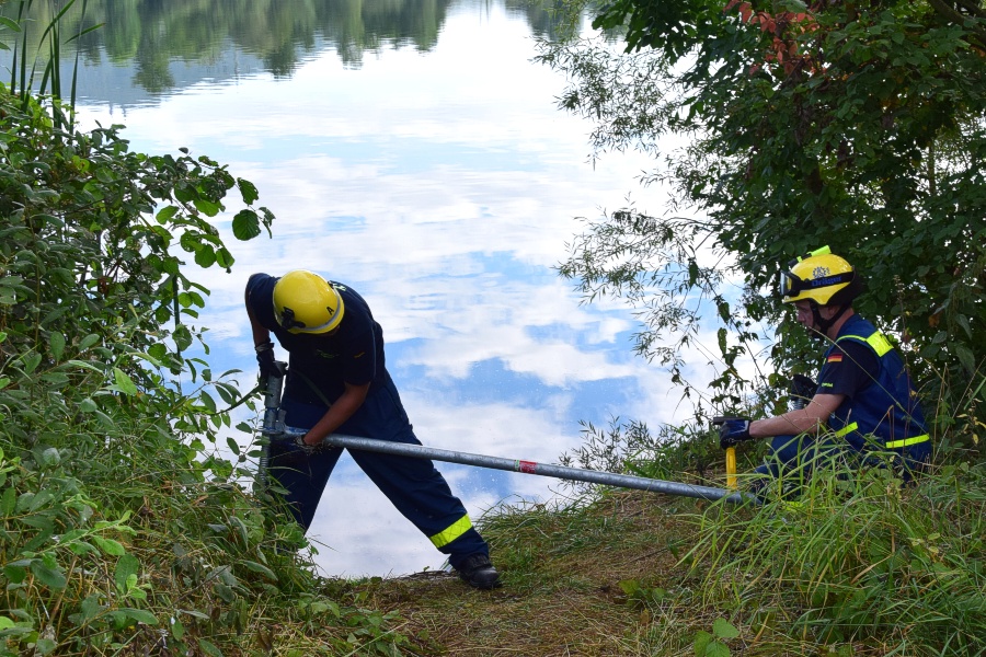 Vom 19. bis 21. August 2016 übte der Technische Zug am Bad Staffelsteiner Baggersee mit dem Schwerpunkt "Arbeiten am und auf dem Wasser".