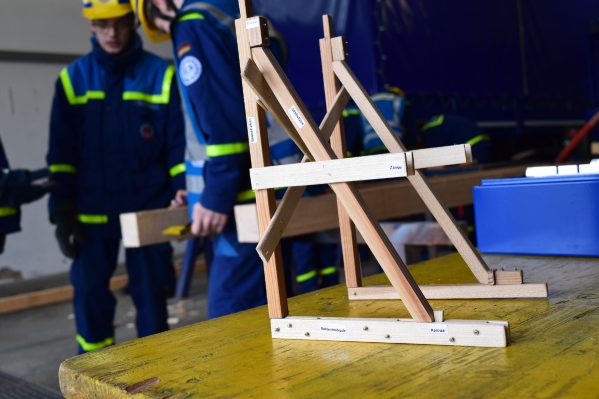 Es wurde ein Strebstützbock aus Holz gebaut, dieser dient zum Abstützen vom Gebäuden nach Schäden.