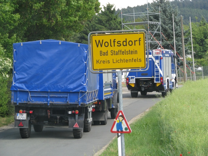 Das THW Bad Staffelstein übte am 28.05.2011 in der Kleukheimer Bergstraße. Das Szenario: Nach Explosion einer Scheune werden mehrere Personen vermisst.