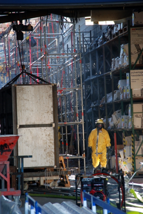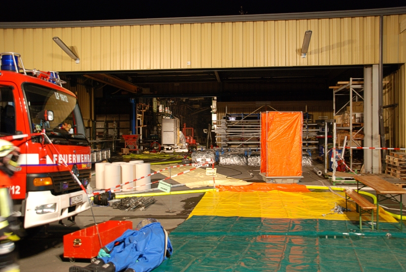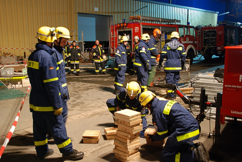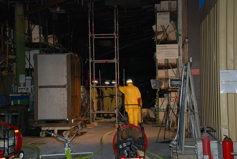Katastrophenalarm im Landkreis Lichtenfels: Das THW Bad Staffelstein war zusammen mit fünf weiteren Ortsverbänden am 14. und 15.03.2012 beim Großbrand der Firma Metob in Michelau im Einsatz. Insgesamt fast 130 Helferinnen und Helfer stützten mit schweren Chemieschutzanzügen und Atemschutz die Hallendecke ab.