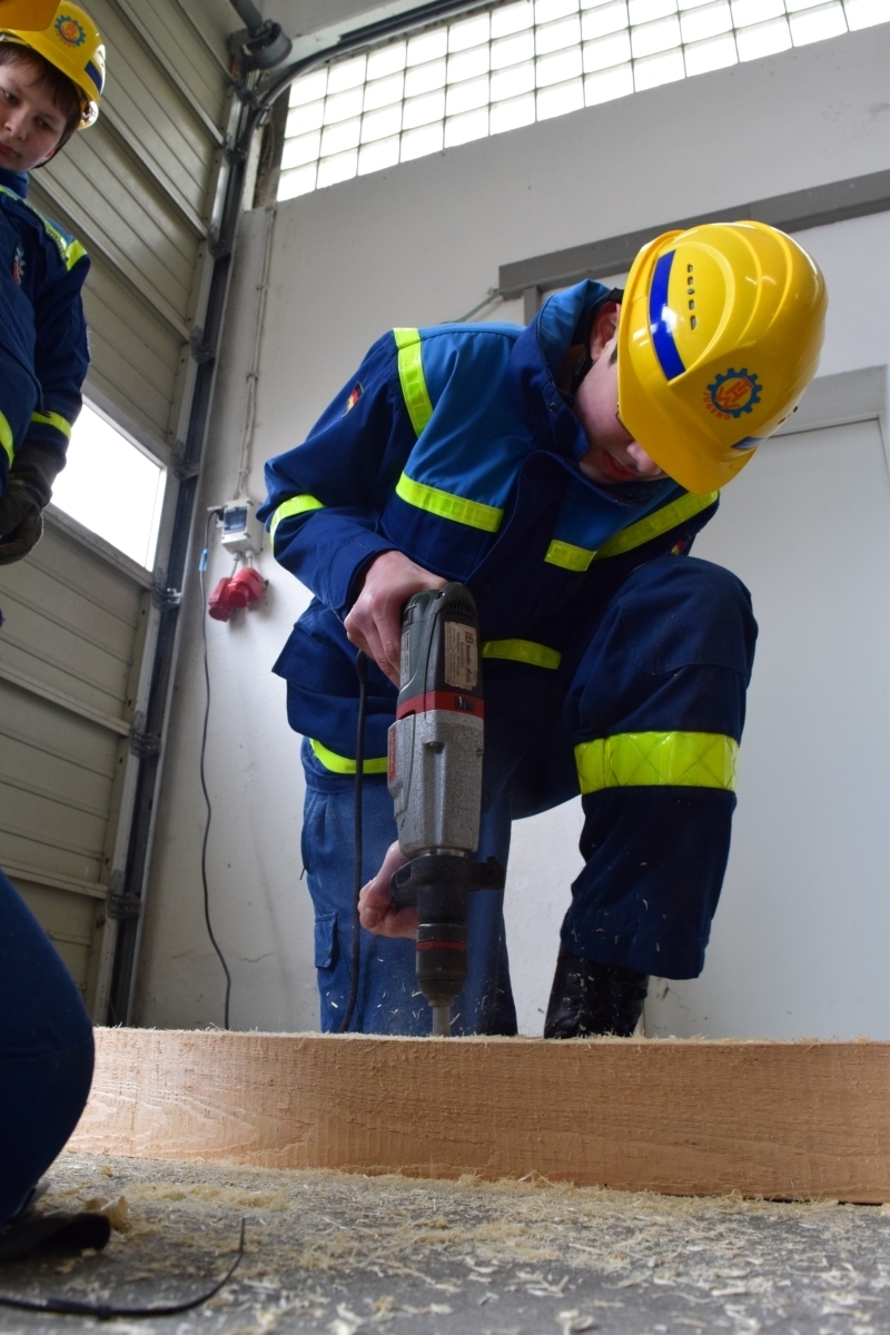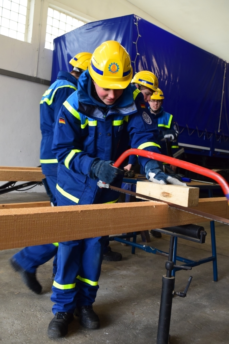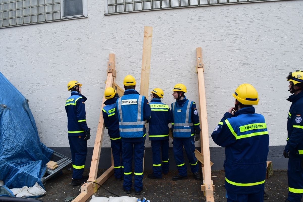 Es wurde ein Strebstützbock aus Holz gebaut, dieser dient zum Abstützen vom Gebäuden nach Schäden.