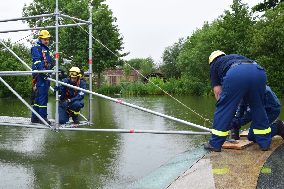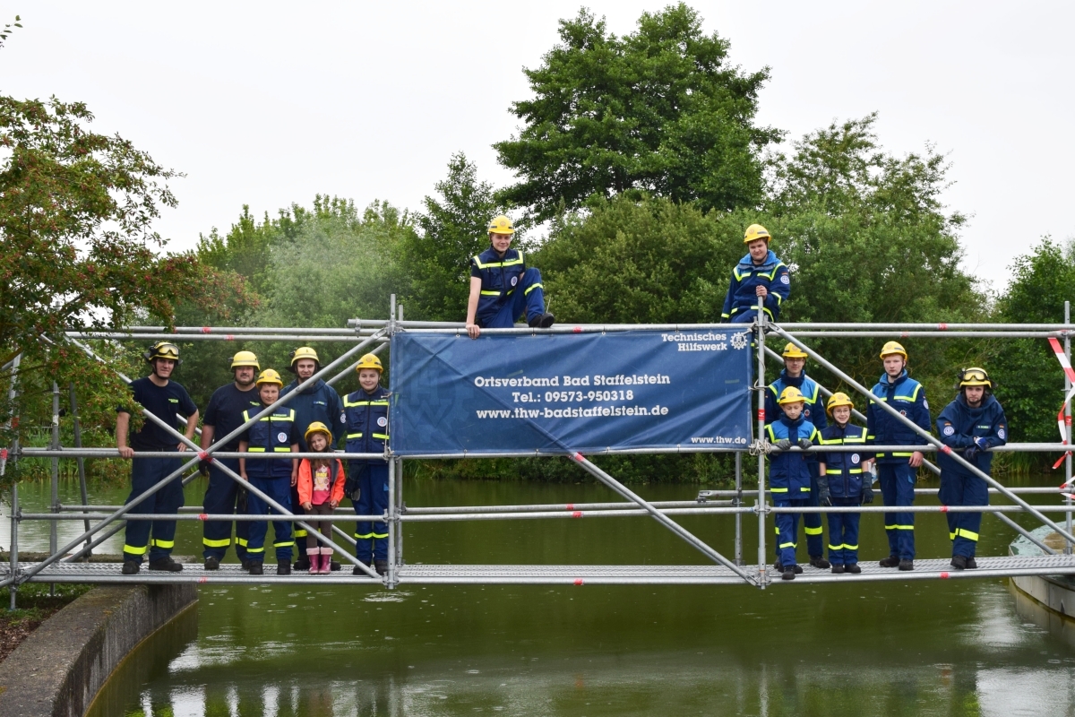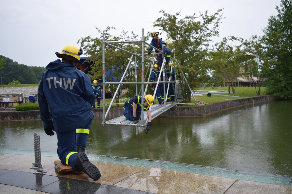 Im Kurpark Bad Staffelstein wurde ein freitragender Steg aus EGS (Einsatz-Gerüst-System) zur Seebühne gebaut.