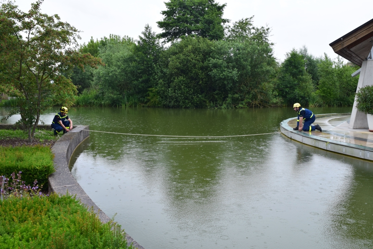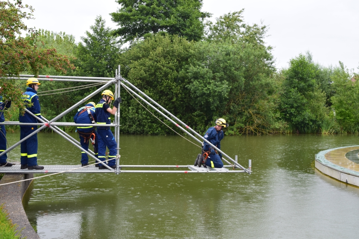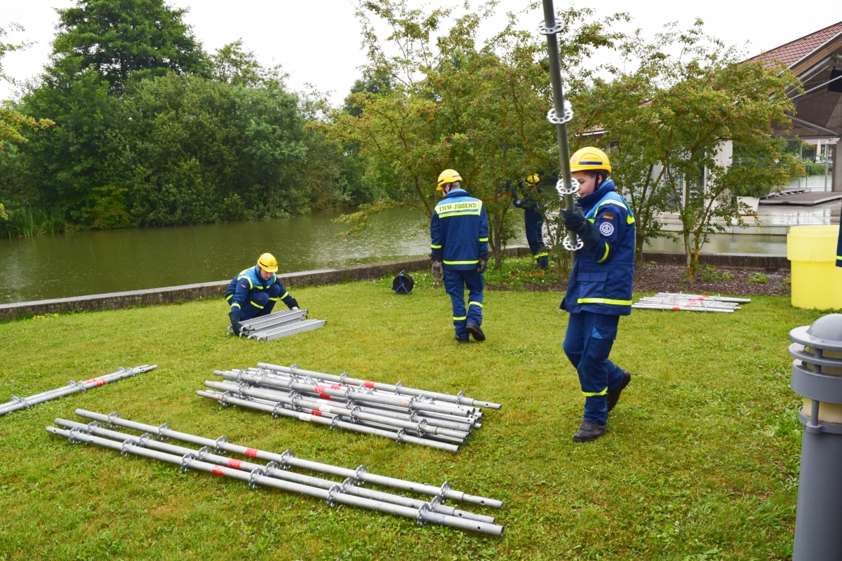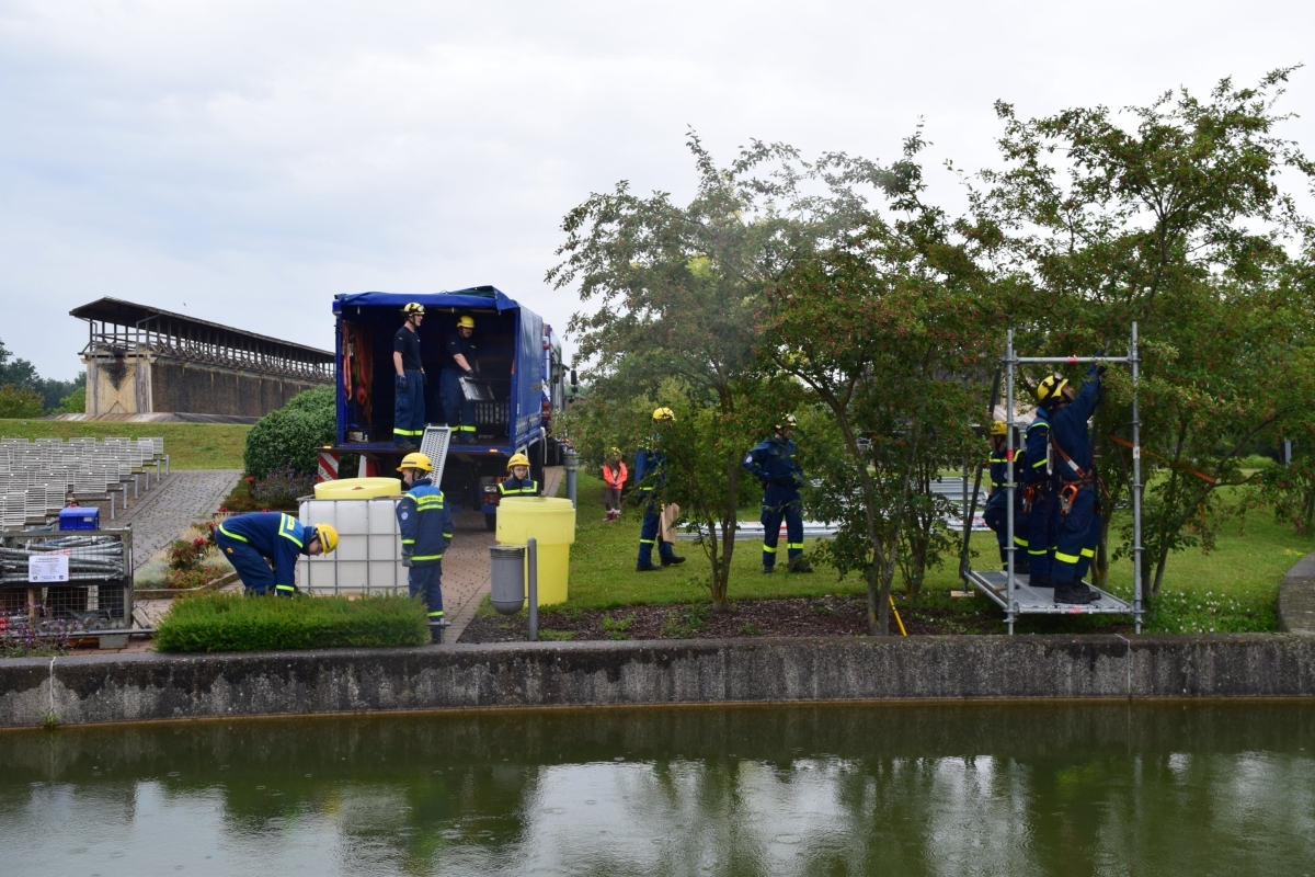 Im Kurpark Bad Staffelstein wurde ein freitragender Steg aus EGS (Einsatz-Gerüst-System) zur Seebühne gebaut.